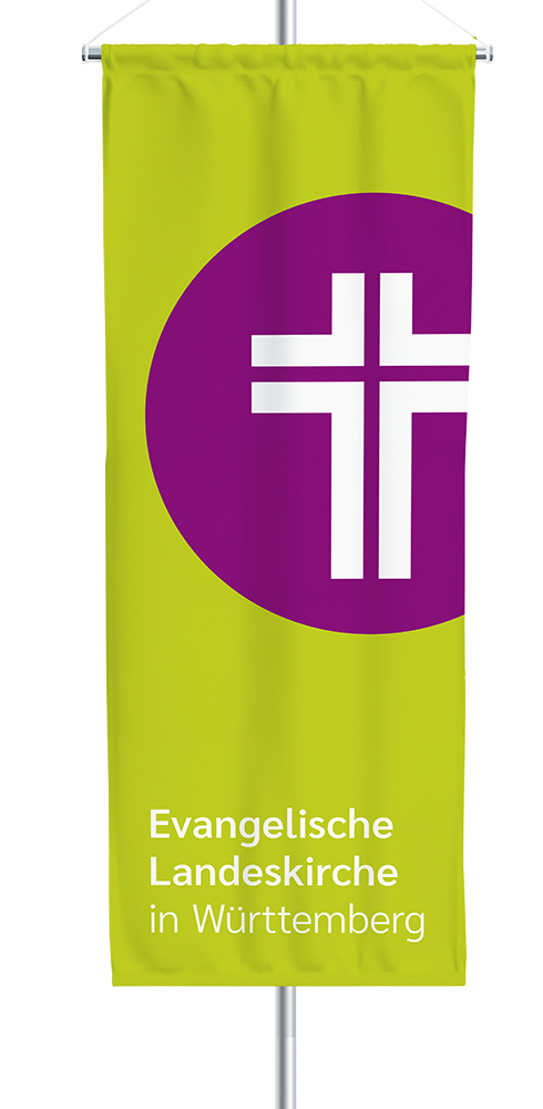 Setzen Sie ein starkes Zeichen mit der Fahne im landeskirchlichen Design. Sichtbar, fröhlich und einladend.
